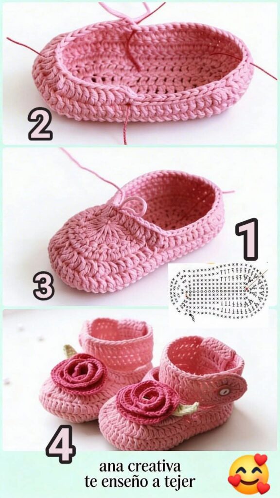 Zapatito de bebé de 3 a 6 meses a crochet en 4 paso facil de hacer con su patrón de suela